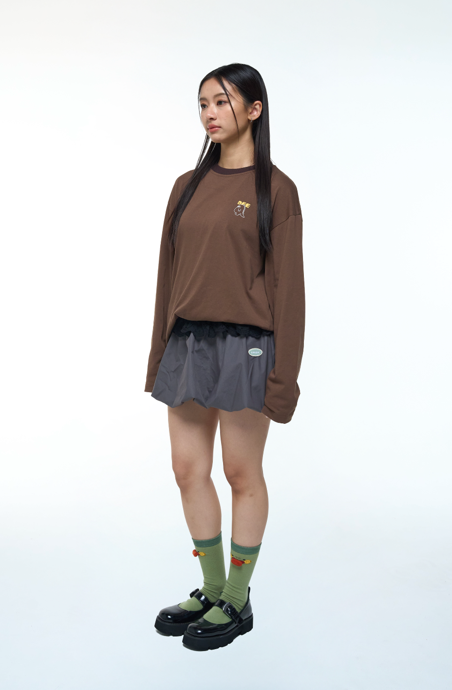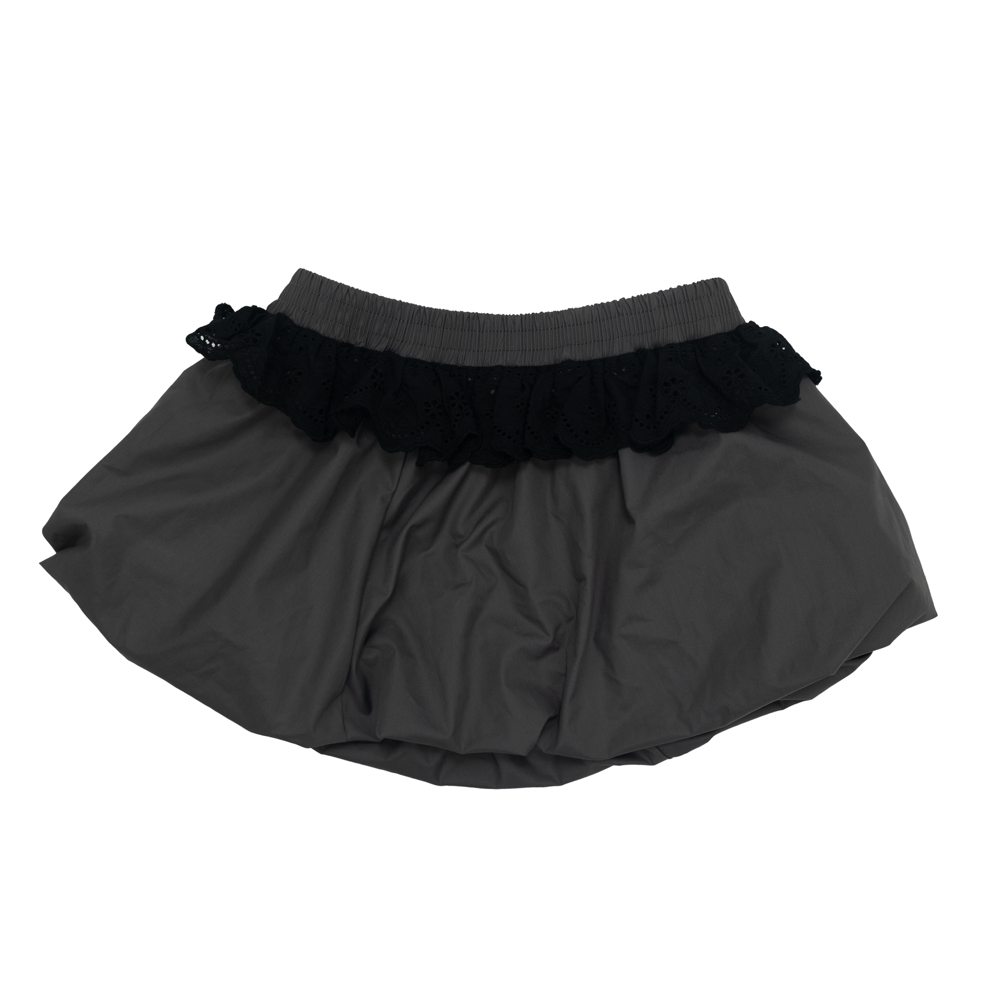 Playful volume, dreamy flow. The Fluffy Skirt bubbles out in soft grey with lace waistband detail — cute enough for twirls, bold enough for street fits.