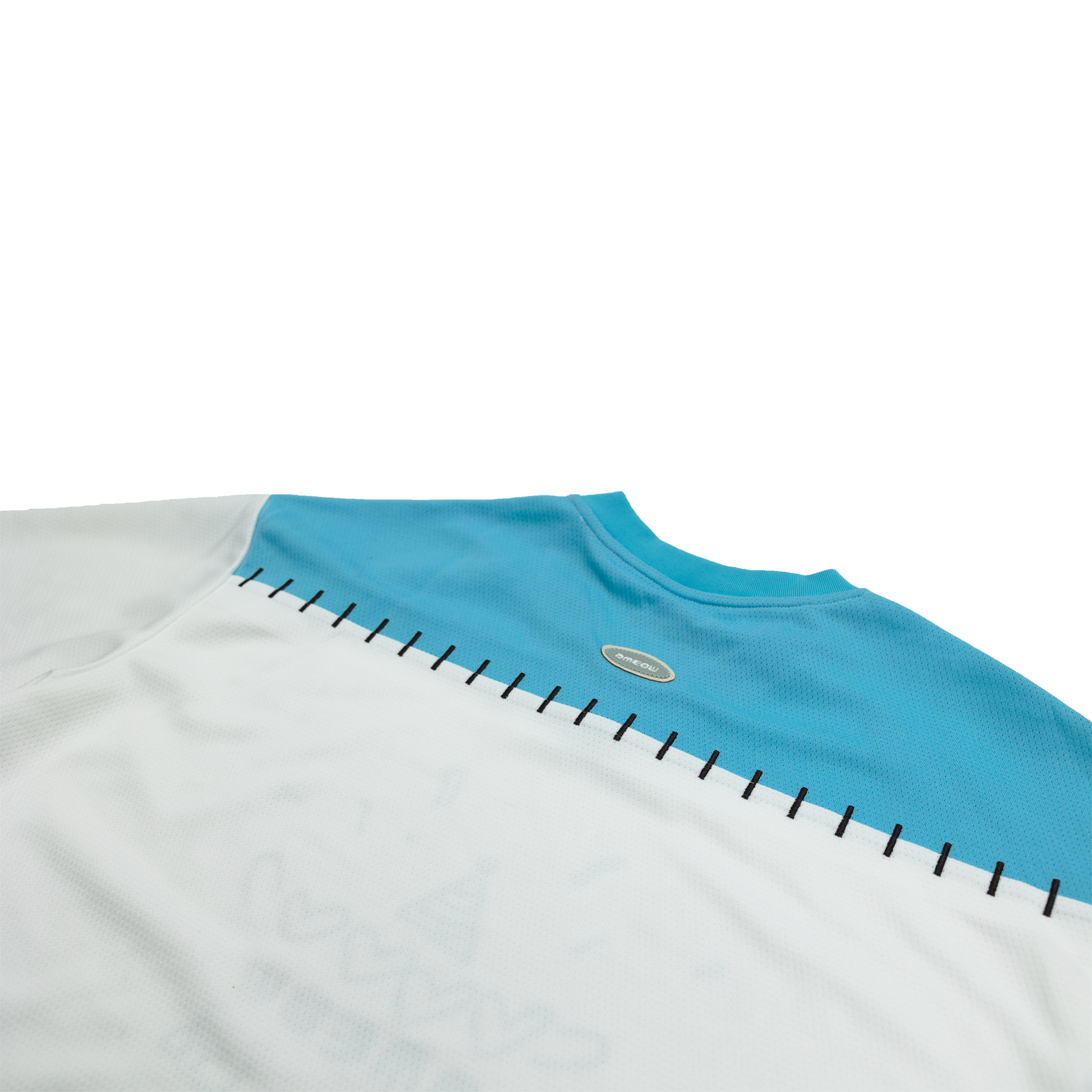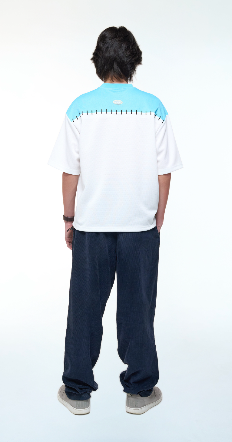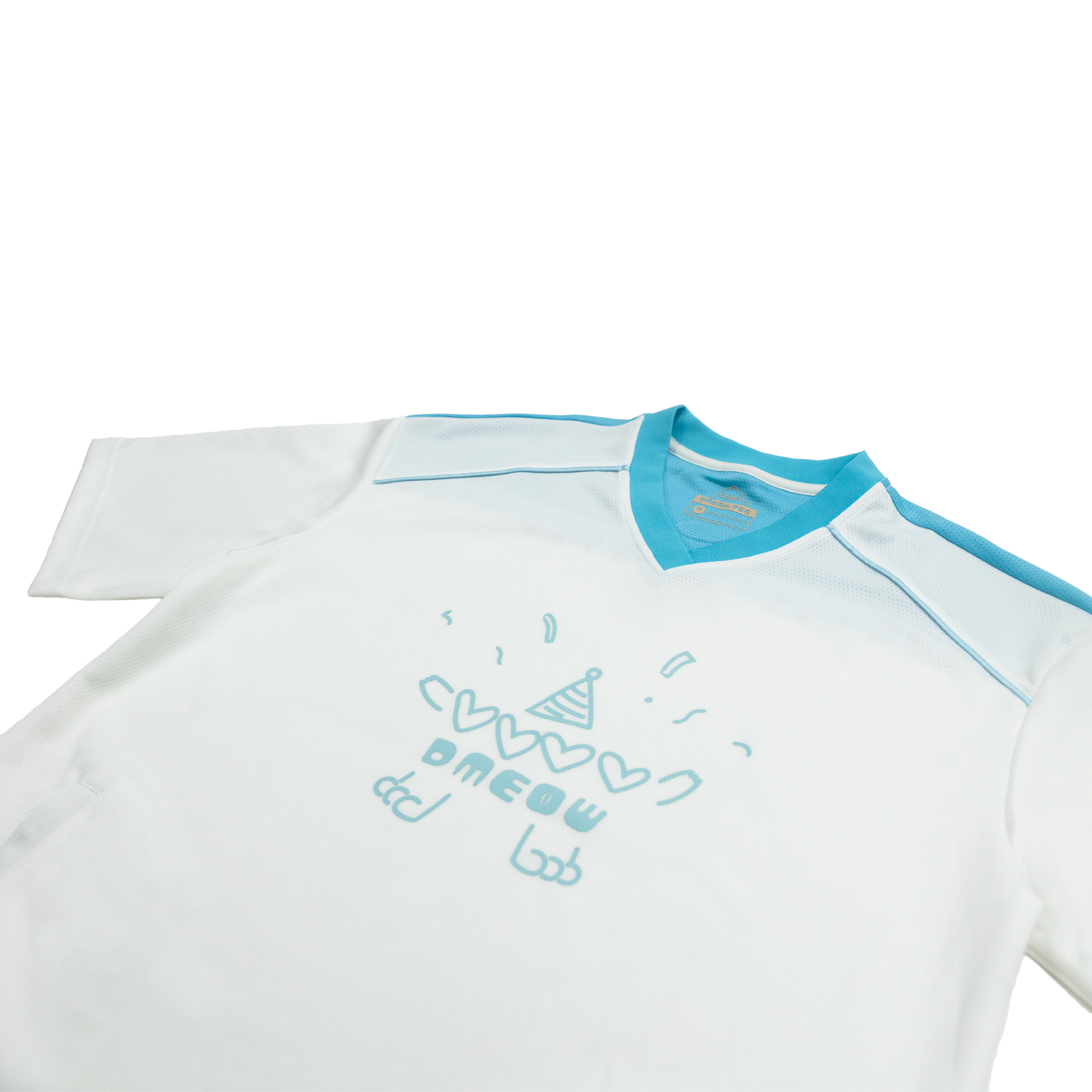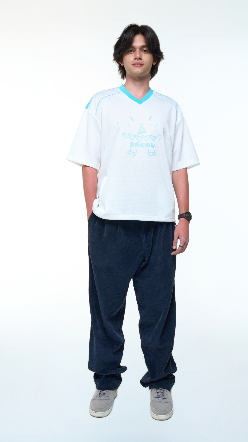 Celebrate every fit with the Hooray White jersey shirt. Clean white base with a pop of blue line, side pocket, and birthday graphic front and center.