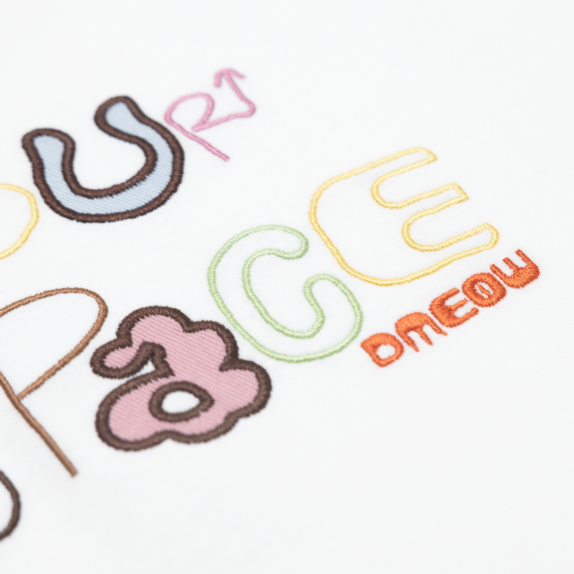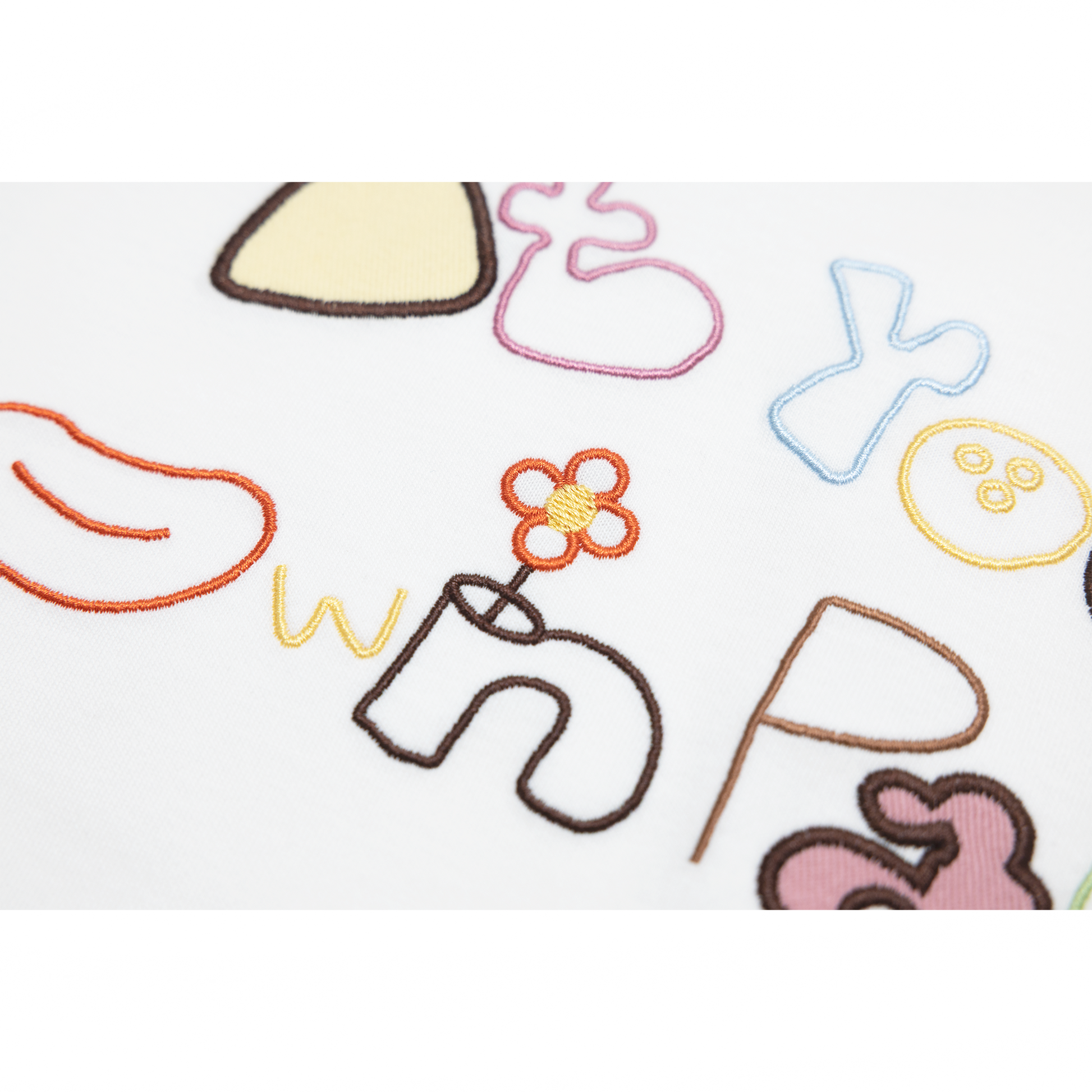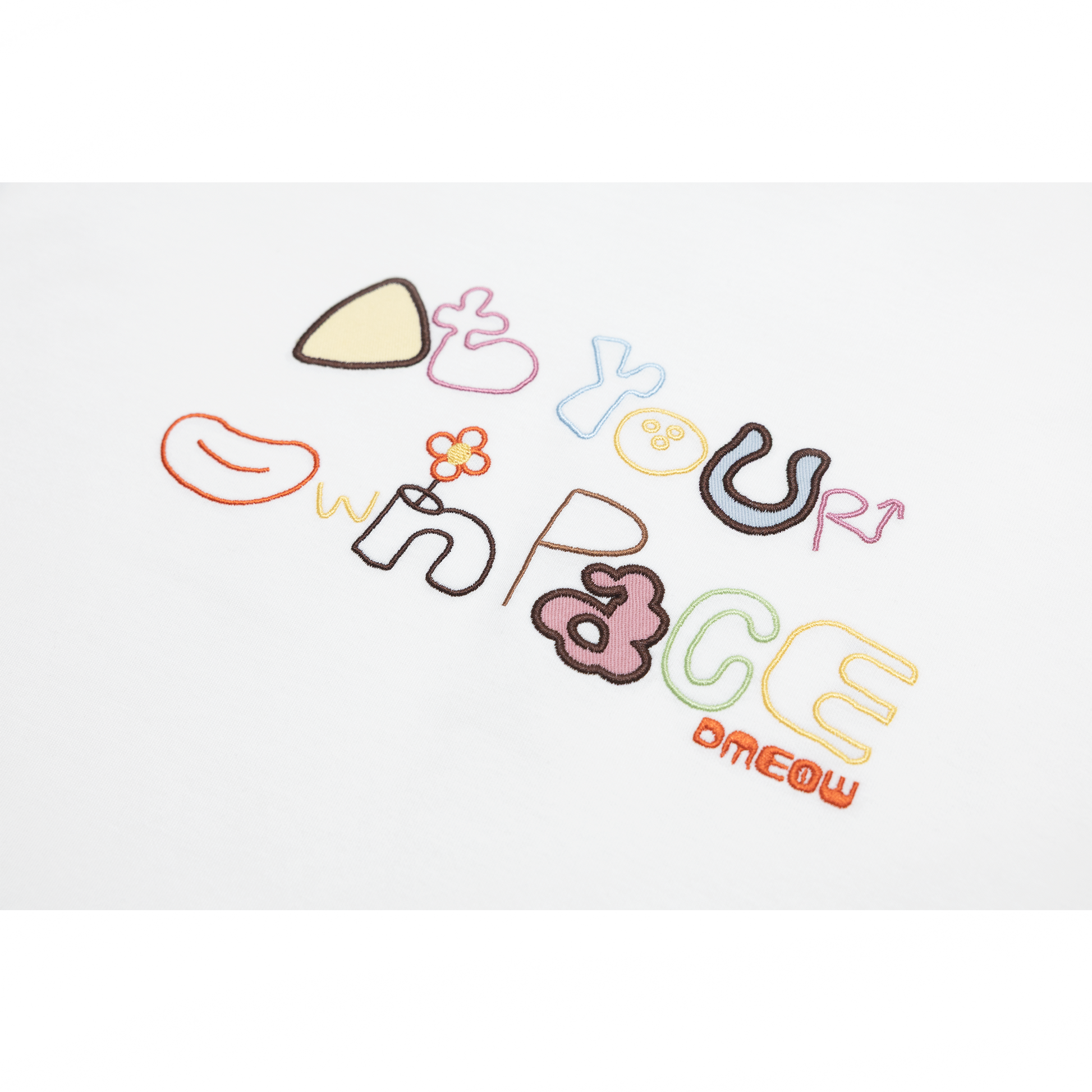 Take it slow and stylish. Embroidered lettering with playful patch-cut details makes this tee uniquely charming.