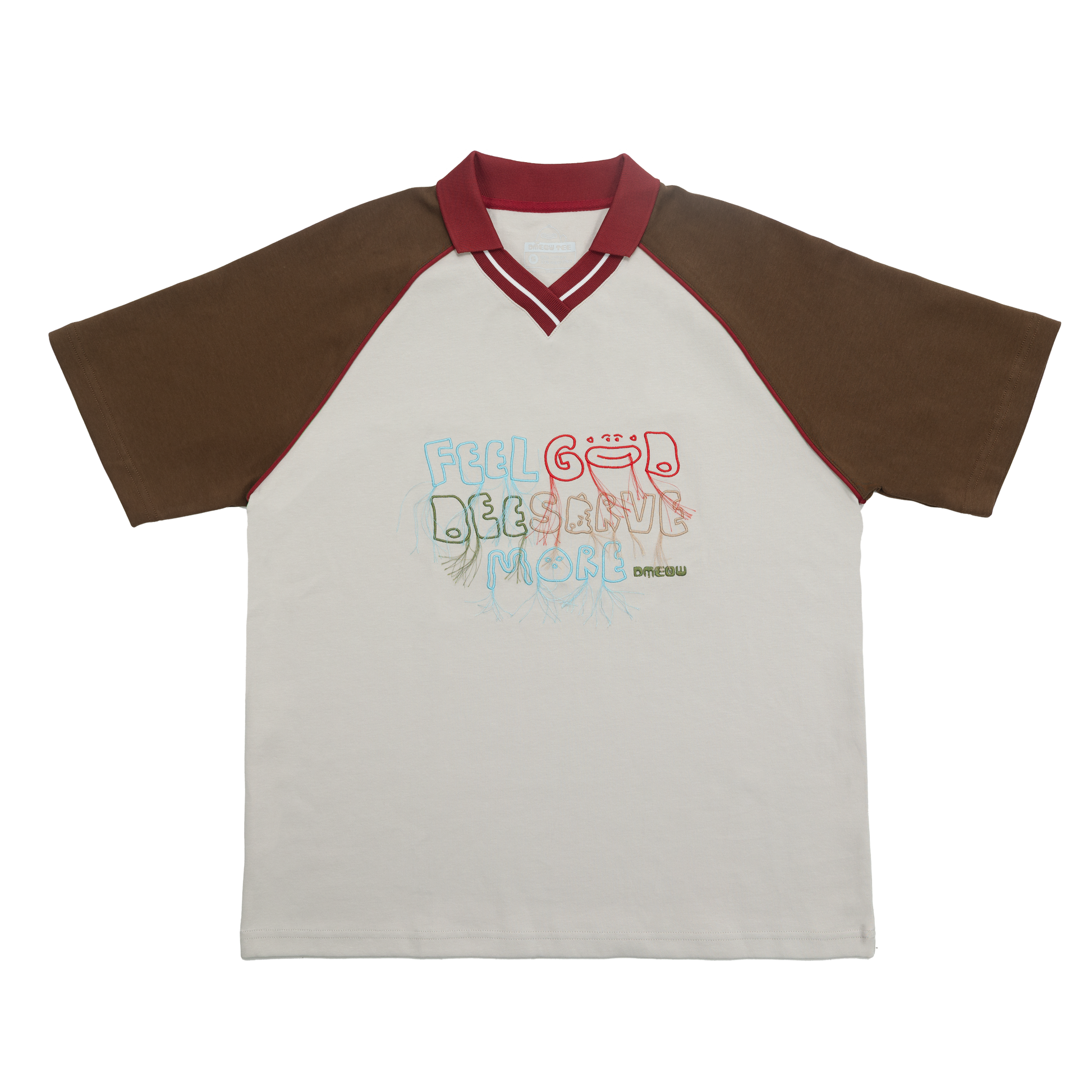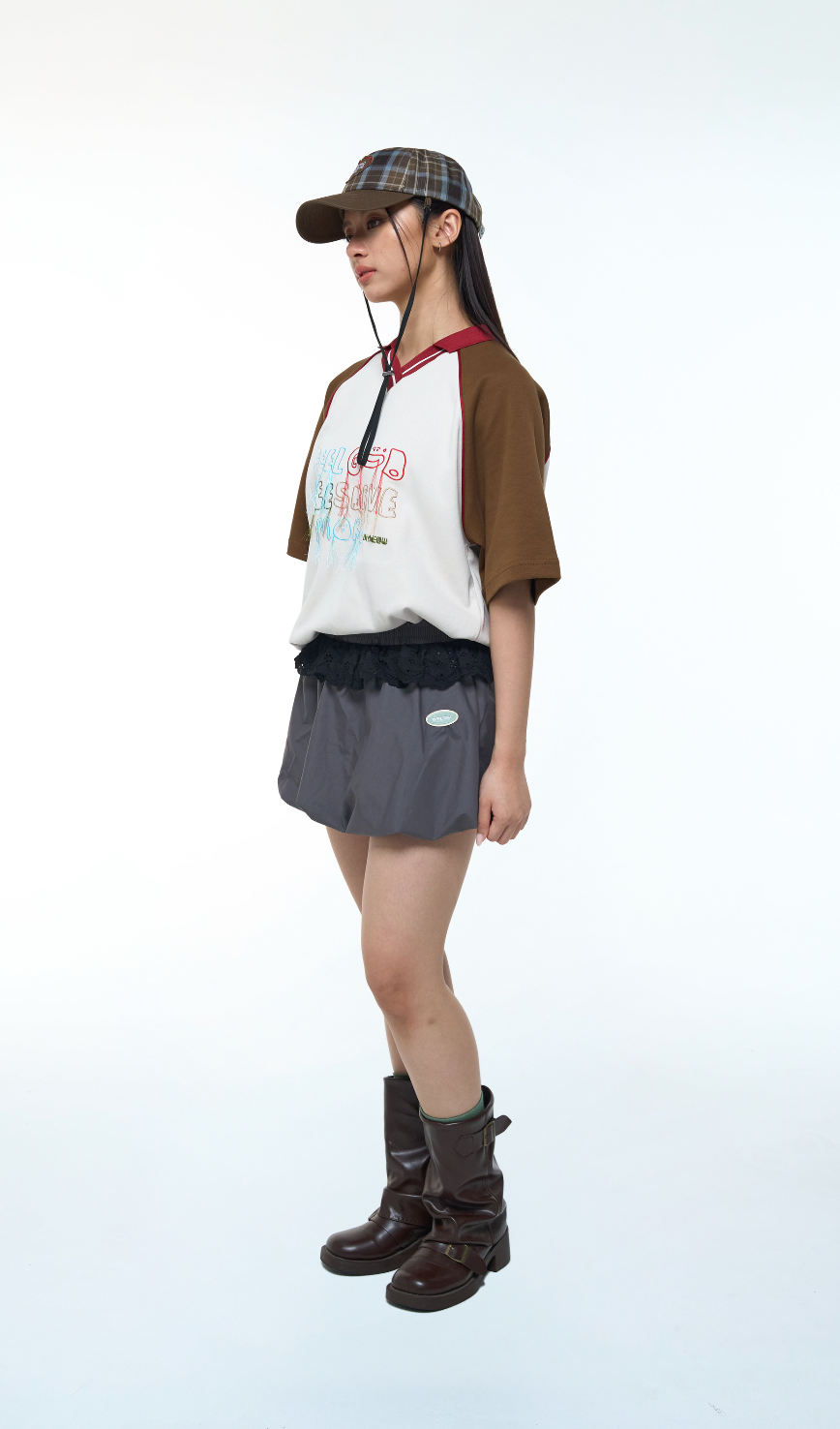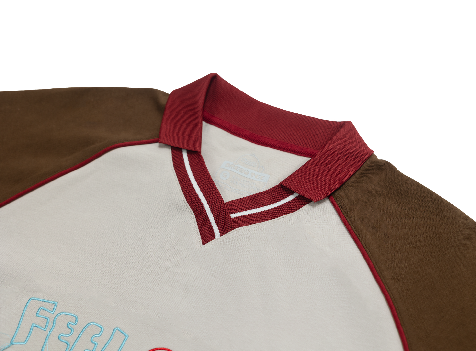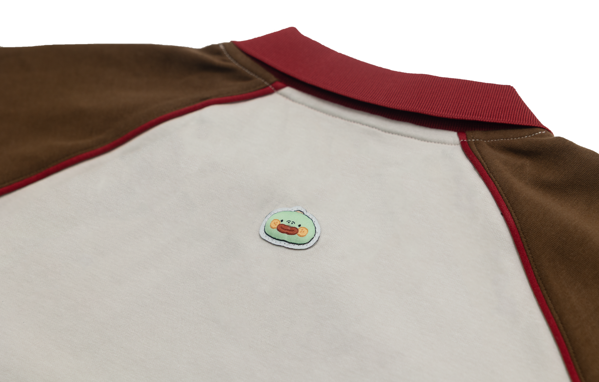 Two-tone attitude. The Be Bold Choco mixes cream body + choco sleeves with center embroidery, loose threads just like birthday ribbon decorations.