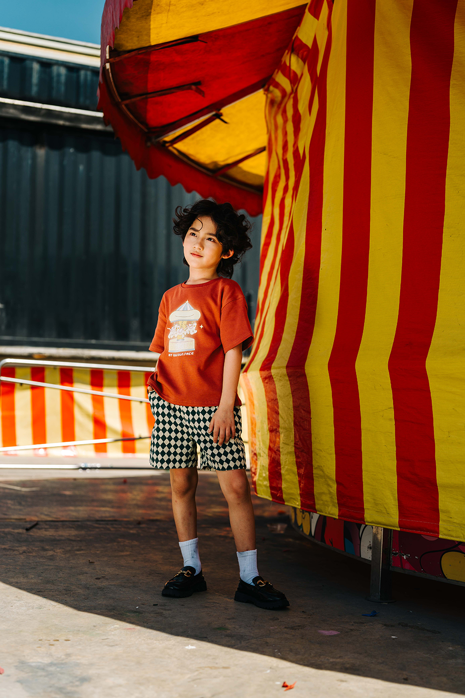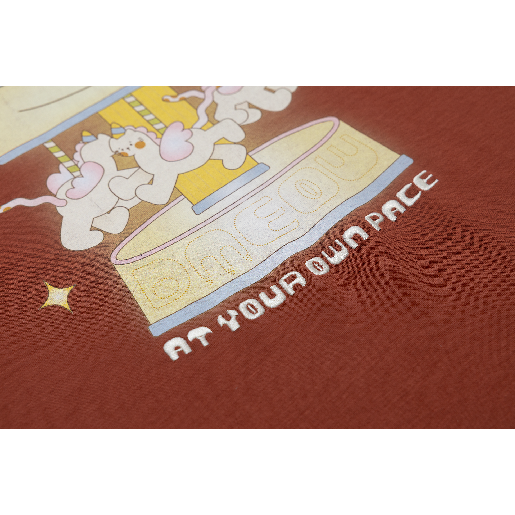 (KIDS VERSION) Hop on the carousel with Meow! This glowing graphic tee turns our mischievous Meow into a magical carousel horse — fun, quirky, and full of energy.
