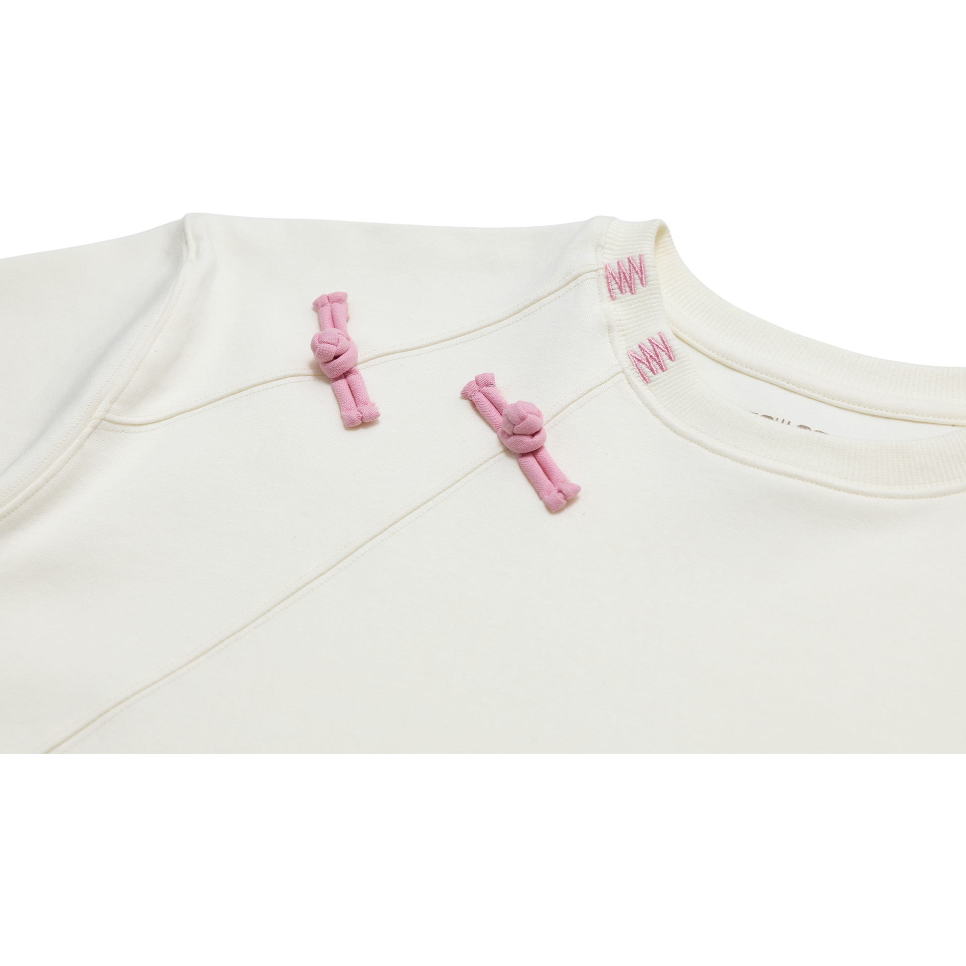 Knots, pockets, and playful charm. A pink shoulder knot, twin side pockets, subtle logo embroidery, and a stone ornament highlight, making this tee functional, cute, and ready for everyday wear.
